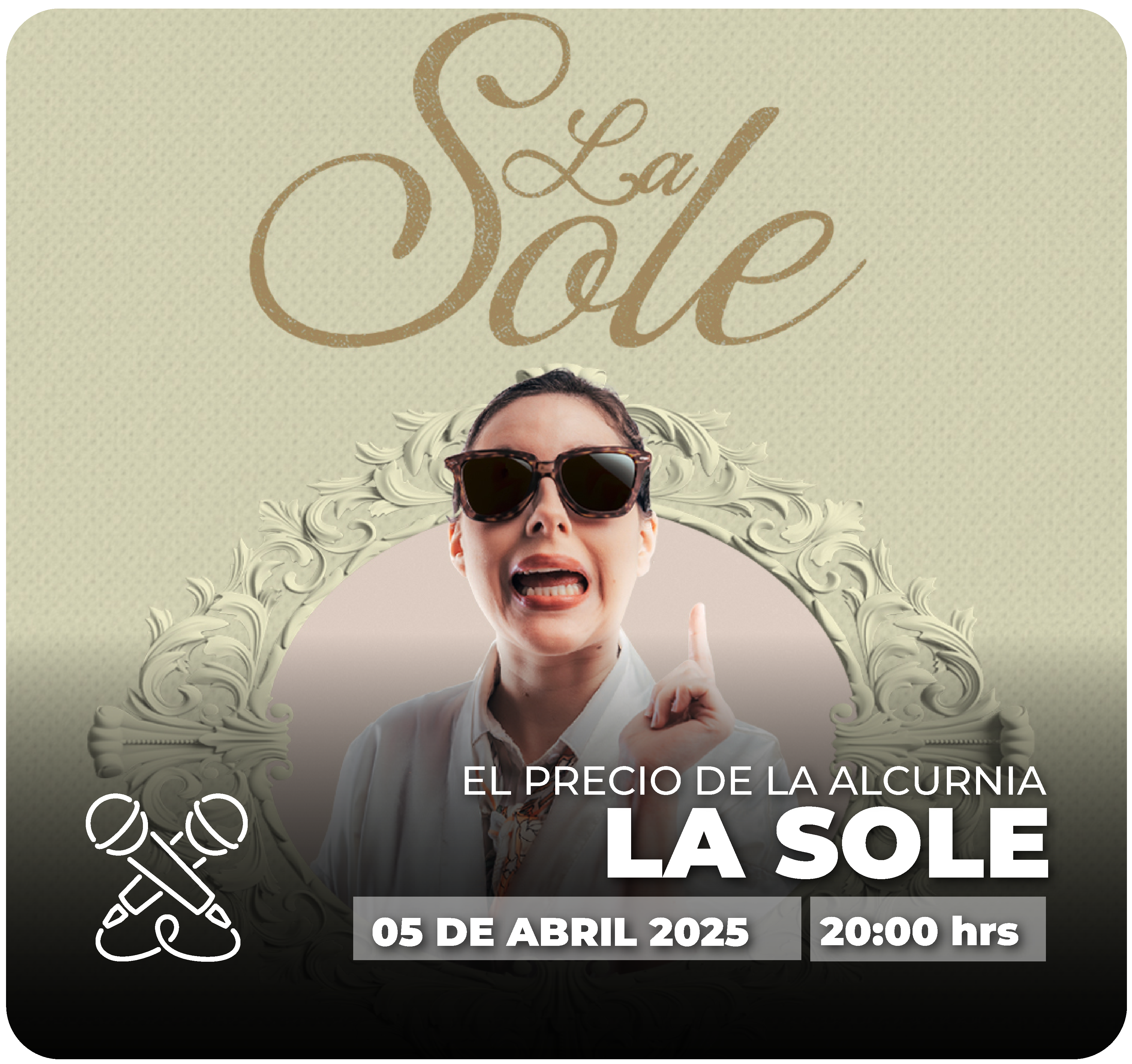 DESCRIPCIÓN DEL EVENTO: “El precio de la alcurnia” es un monólogo cómico que revela las metas internas y la esencia humana del personaje de La Sole, que representa a una señora de 55 años perteneciente a la clase alta. El desarrollo de la historia comienza tras el abandono de su empleada Norma, situación que la obliga a enfrentar sus mayores miedos.