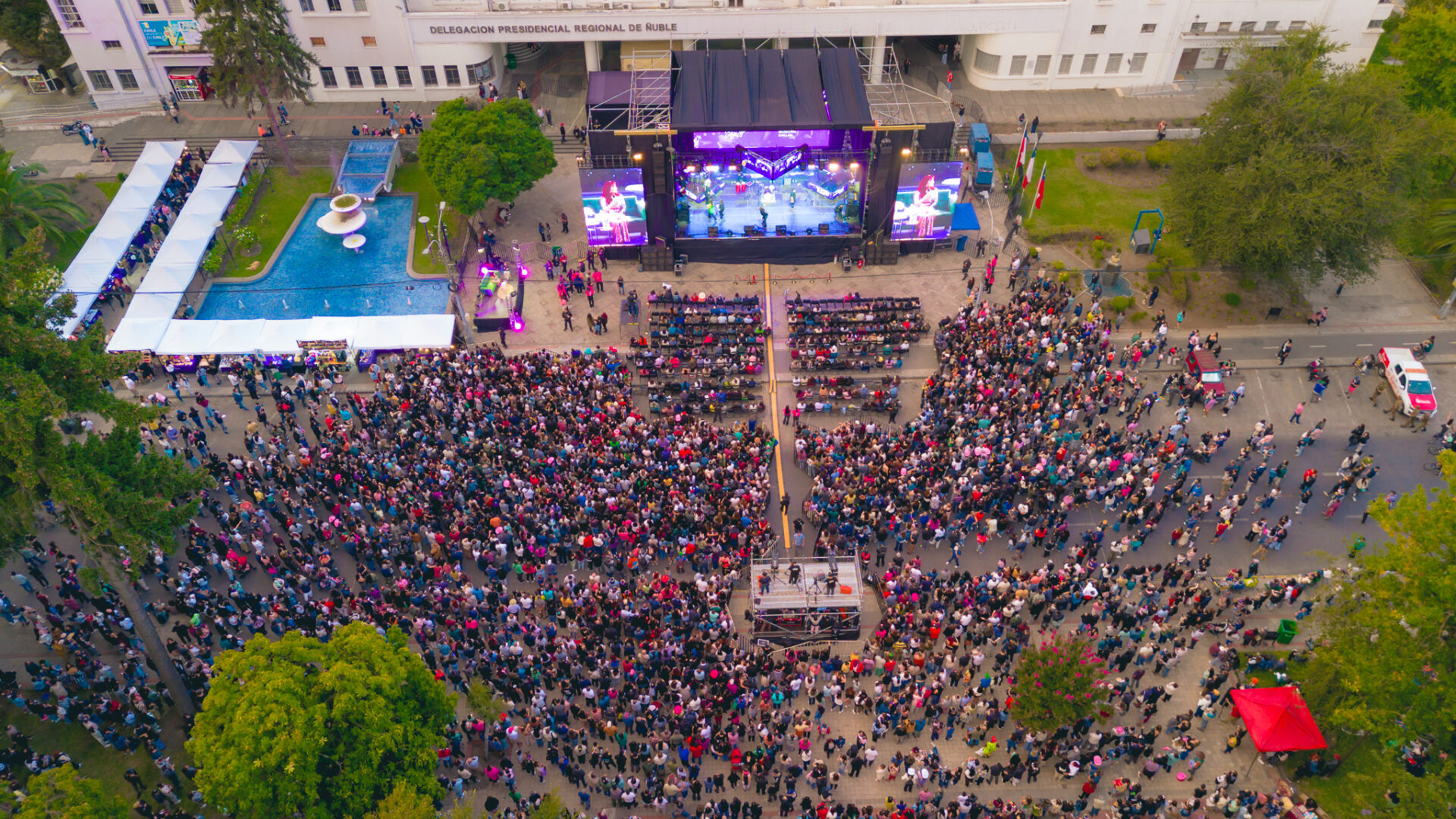 La explanada del Gobierno Regional de Ñuble fue el escenario de una masiva jornada musical encabezada por la cantante nacional María José Quintanilla, junto a artistas locales.